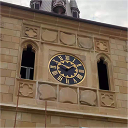 塔鐘機(jī)芯采用我公司自主研制開發(fā)的四連桿式機(jī)芯,即一臺主機(jī)帶動四臺分機(jī)運機(jī)運轉(zhuǎn),從而很好的保證了四面塔鐘計時的同步性。